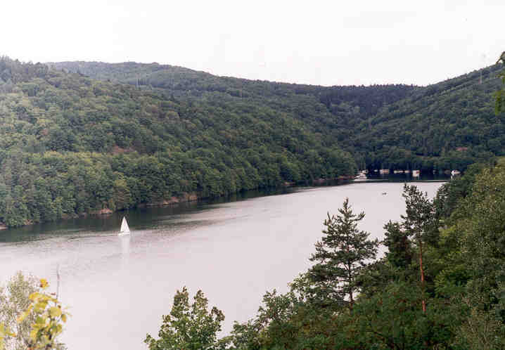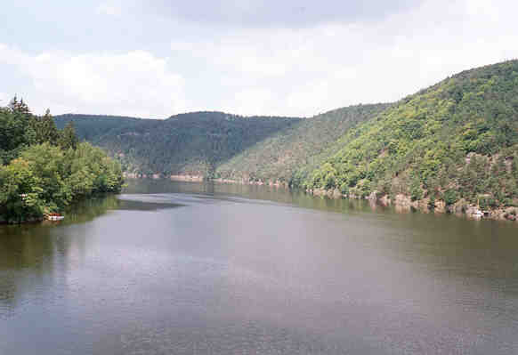 rekreačními zařízeními, levobřežně s krásnou scenérií lesnatých a skalnatých břehů (říká se tu