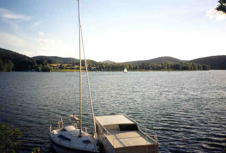 strmý masiv. Na pravoboku je další jachtaři obydlená zátoka. Asi 300 m na levoboku jsou těsně za sebou