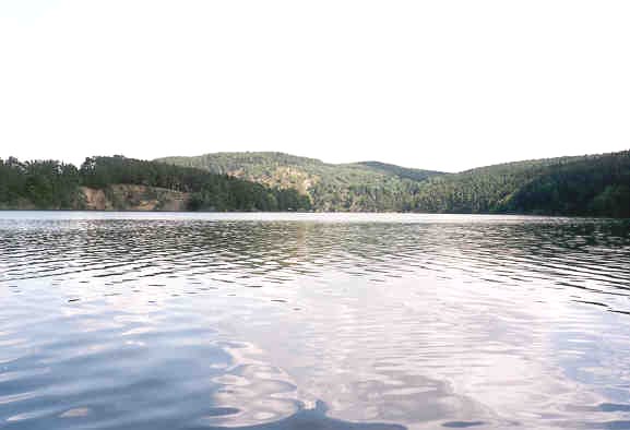 Obozu, opět k pravobřežnímu rekreačnímu centru. Levý břeh je lemován příkrými skalnatými stěnami. Za