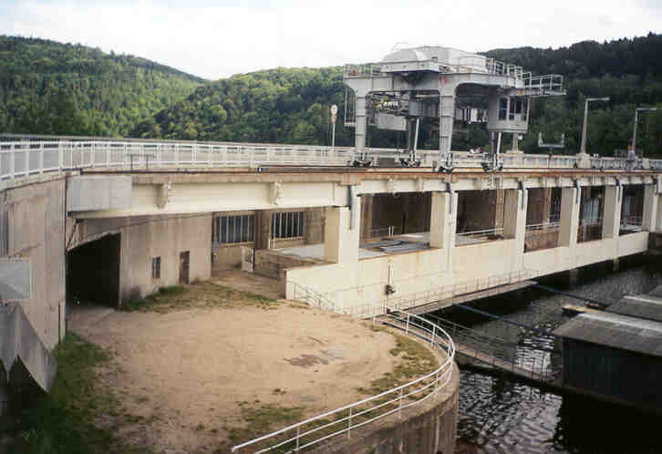 nad hráz traktor s vlekem provozovaný Povodím Vltava.