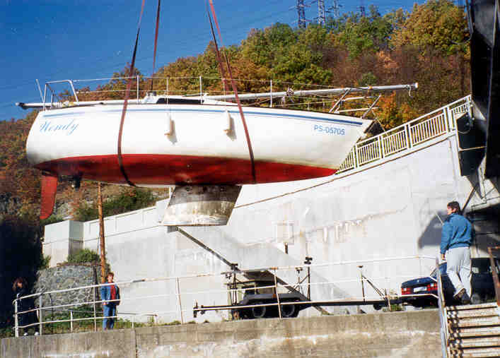 výškově a jeřáb sám nosností 3,5 tuny. Proto je nutné větší lodě přeložit