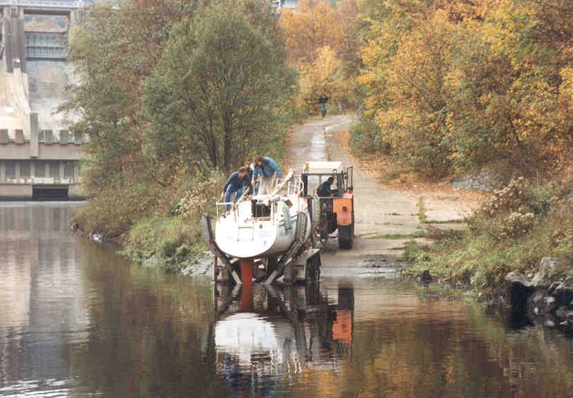 který pak na náplavce zajede s lodí do vody. To je také druhá možnost.