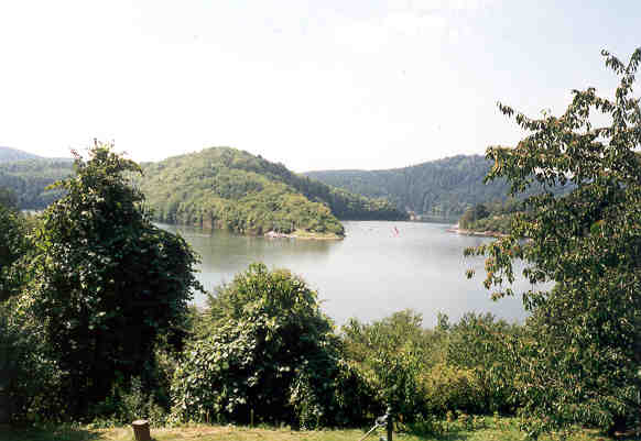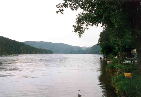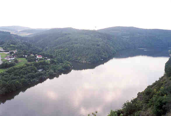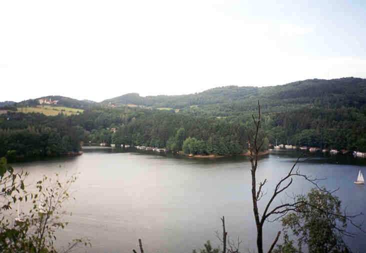 rekreačními zařízeními, levobřežně s krásnou scenérií lesnatých a skalnatých břehů (říká se tu