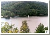 ![]() Zde pod kapličkou (levá část fotografie - u plachetnice) se nacházel hotel Záhoří |