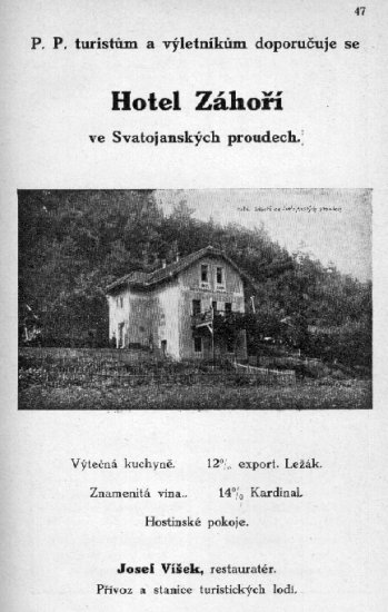Vltavy nacházel hotel Záhoří, který své jméno získal podle nedalekého stejnojmenného polesí.